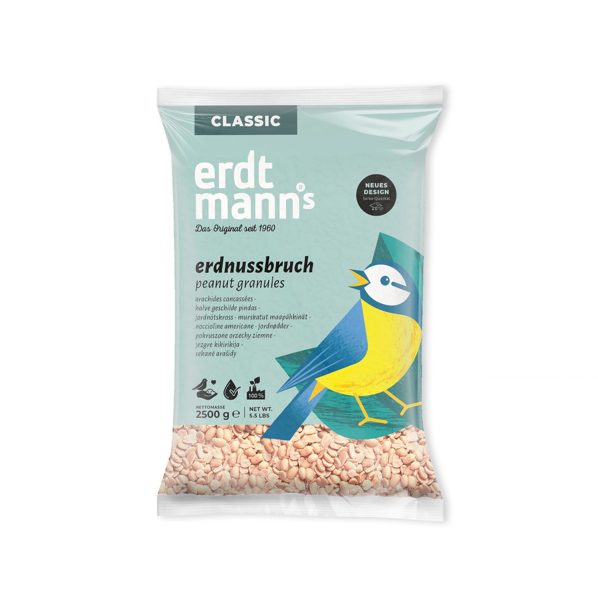Erdnussbruch besteht aus halben Erdnusskernen und Erdnussstückchen ohne Hautschale. Es ist besonders delikat an der Futterstelle. Schnabelgerecht zugeschnitten sind sie besonders leicht zugänglich für alle Wildvogelarten von großem Wert. Sie sind eine gelungene Abwechslung an der Futterstelle. Ideal für Futterhäuschen, eine geschützte Bodenfutterstelle oder auch für den Balkon, da das Futter keine Rückstände hinterlässt. Auch für Eichhörnchen geeignet.